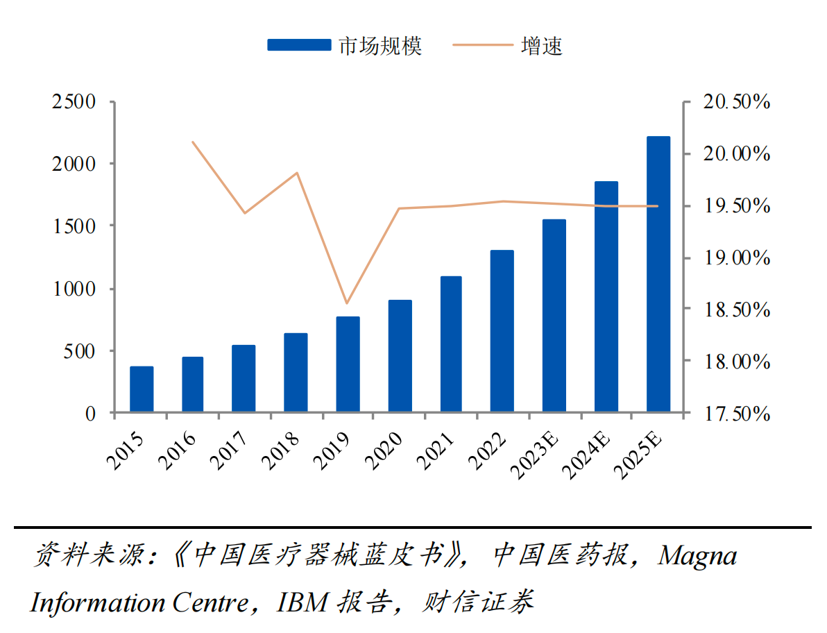 以醫用導管市場為例,據MarketResearchFuture預測,全球醫用導管市場在2017-2022年間以6.14%的復合增速增長至468億美元,而2019年我國醫用導管市場規模為661.5億元,同比增長12.56%,預計國內醫用導管市場將以12.56%的復合增速增至2022年的943.40億元,增速遠超全球平均水平。
