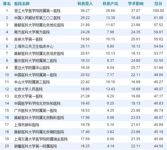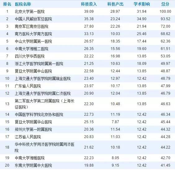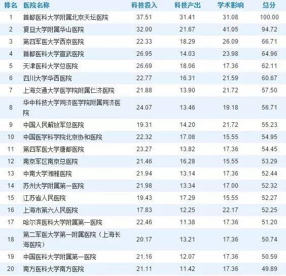 2015年度中國醫院科技影響力——主要學科排行榜發布