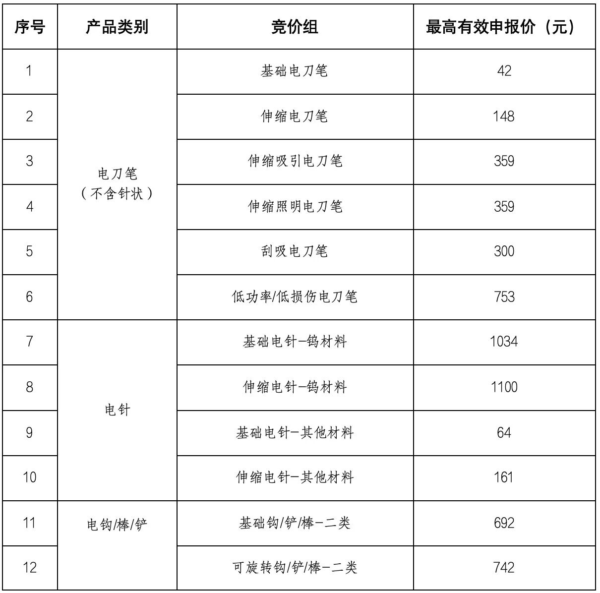 相較11月發(fā)布的征求意見稿,正式采購文件的競價組從32個減至24個。例如基礎電刀筆、伸縮電刀筆等均單獨成組,不再區(qū)分有無涂層。