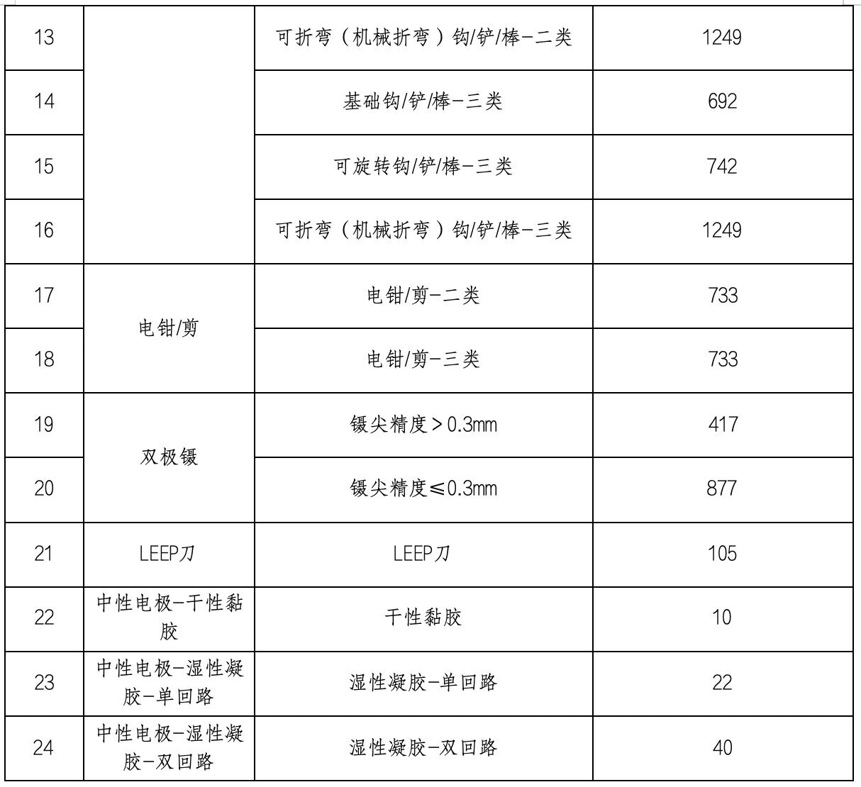 在征求意見稿中,基礎電刀筆有無涂層的最高有效申報價分別為80元和55元,在新的競價組中統(tǒng)一定為43元;電鉗/剪從904元下調(diào)至733元;伸縮照明電刀筆從508元下調(diào)至359元。