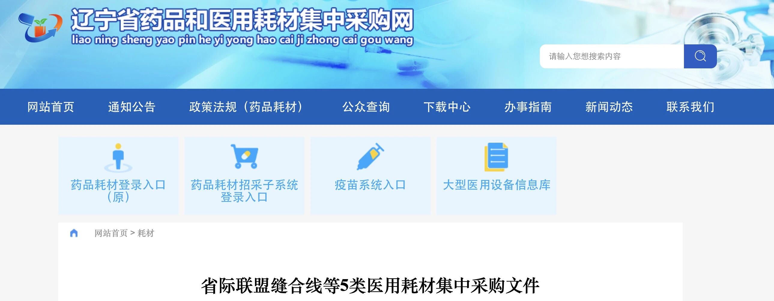 近日,遼寧省藥品及醫用耗材集中采購網發布《省際聯盟縫合線等5類醫用耗材集中采購文件》。