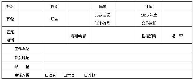 收費標準:注冊費:人民幣1200元,COGA終身會員及2015年度注冊會員人民幣1000元,住院醫師、研究生人民幣500元(憑單位人事部門證明信)。獲協會資助的COGA會員憑資助證明免費注冊。注冊代表將獲得大會文字及影音資料(不含手術剪輯專場錄像及手術實況錄像)、會員紀念徽標、帶有會議標識的紀念 品、歡迎晚宴邀請券、會議期間餐券、大型展會參觀憑證等。