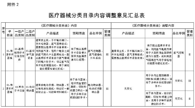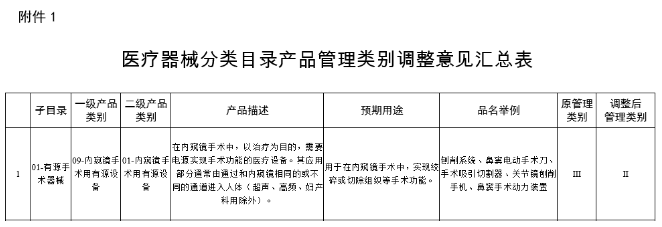 15類器械降低類別,另13類目錄內容調整
