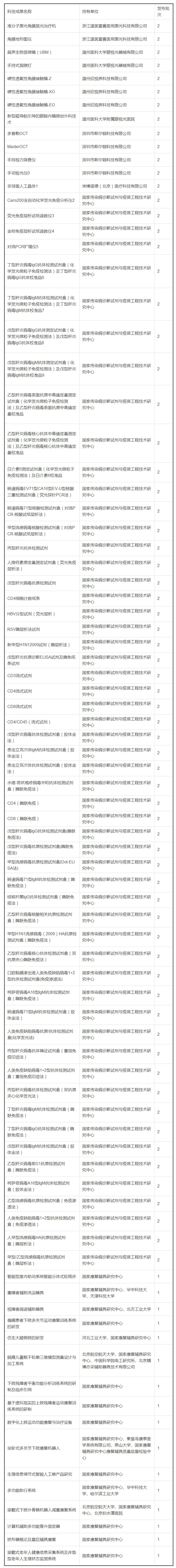 其中,人口健康領(lǐng)域的科技成果有89項(xiàng),大部分又是醫(yī)療器械或按照醫(yī)療器械管理的體外診斷試劑(69項(xiàng))。加上3月3日發(fā)布的第一批內(nèi)容,科技部今年已經(jīng)發(fā)布了113項(xiàng)人口健康領(lǐng)域的科技成果轉(zhuǎn)化推廣信息,醫(yī)療器械占到85項(xiàng)。