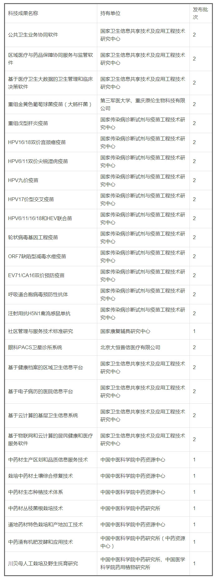 項(xiàng)人口健康領(lǐng)域科技成果名單如下: