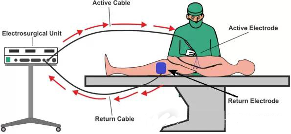現在的高頻電刀都配備高頻隔離技術,隔離的高頻電流只將負極板當作返回高頻電刀回路的唯一通道。