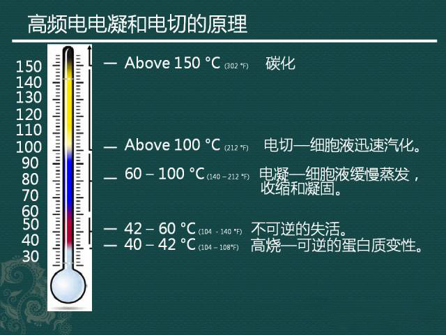 高頻電主要是在病灶局部產生相應頻率的電壓和電流,而其最本質的區別在于熱效應的溫度不同。相對高的溫度可以形成切割的效果,而相對低的溫度(仍然相對較高)可以實現電凝的效果,兩者的根本原理都是高頻電產生的熱效應。