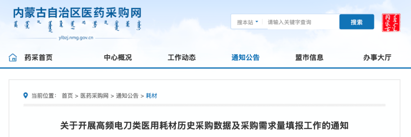 8月15日,內(nèi)蒙古自治區(qū)醫(yī)藥采購中心發(fā)布《關(guān)于開展高頻電刀類醫(yī)用耗材歷史采購數(shù)據(jù)及采購需求量填報(bào)工作的通知》,將根據(jù)湖南省聯(lián)采辦《關(guān)于開展高頻電刀類醫(yī)用耗材歷史采購數(shù)據(jù)及采購需求量填報(bào)工作的通知》,開展高頻電刀類醫(yī)用耗材歷史采購數(shù)據(jù)和采購需求量填報(bào)工作。