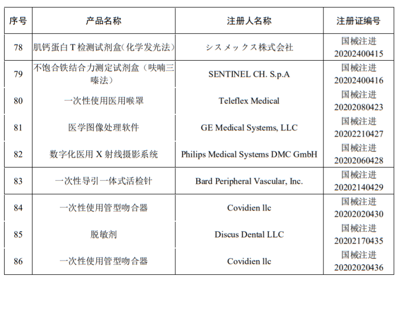 86個獲批器械清單