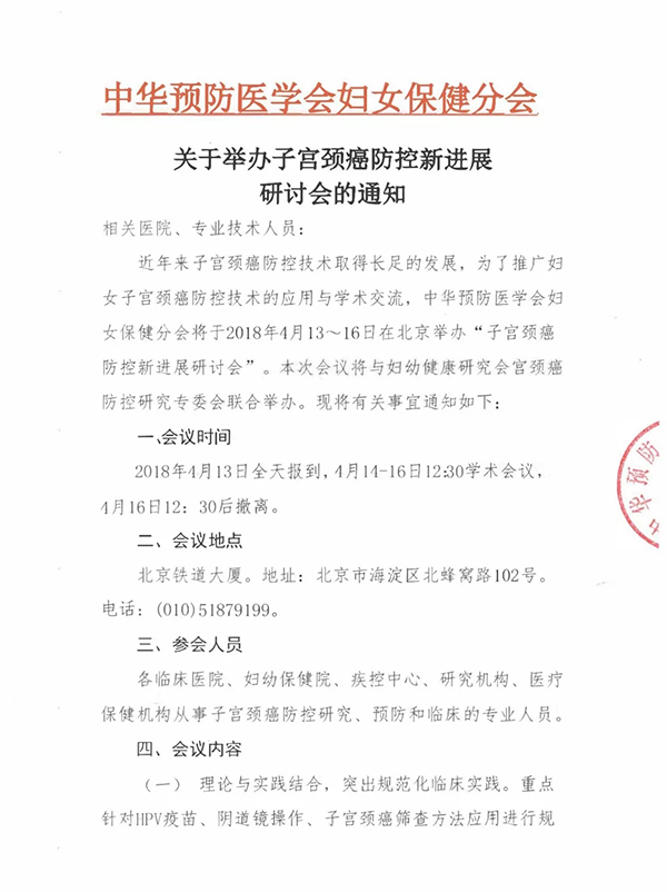 宮頸癌防控新進展研討會通知