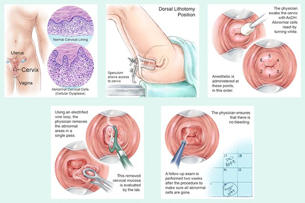 宮頸電熱圈環切術 (LEEP) 是目前國內最先進的治療宮頸疾病的手段。此法通過環行金屬絲(圈電極)傳導高頻交流電,利用高頻電流所特有的干燥脫水效應、電弧切割效應來對電極接觸的組織進行快速切開。
