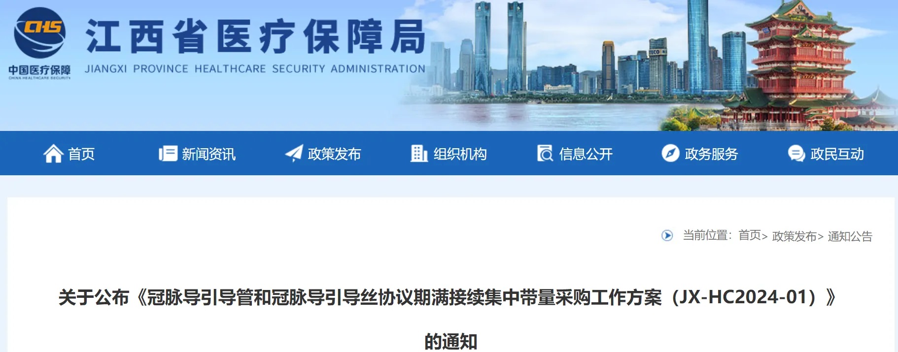 7月30日,江西醫(yī)保局發(fā)布《冠脈導引導管和冠脈導引導絲協(xié)議期滿接續(xù)集中帶量采購工作方案(JX-HC2024-01)》(完整見文末)。