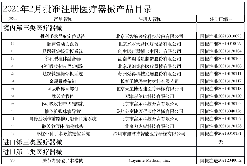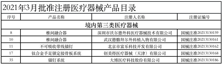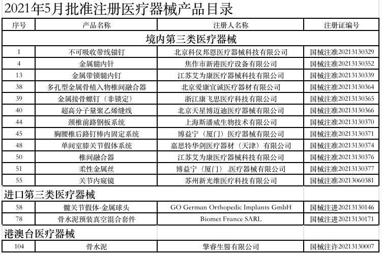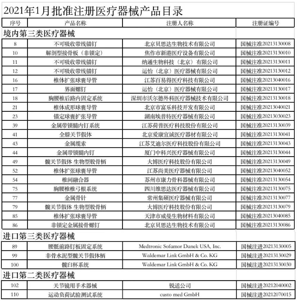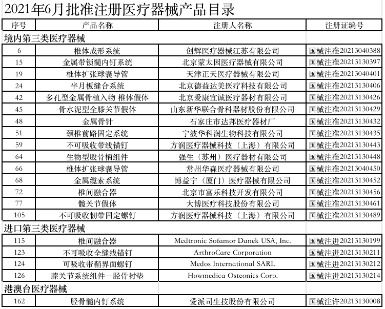 附:2021年1-6月獲批的骨科醫(yī)療器械產(chǎn)品