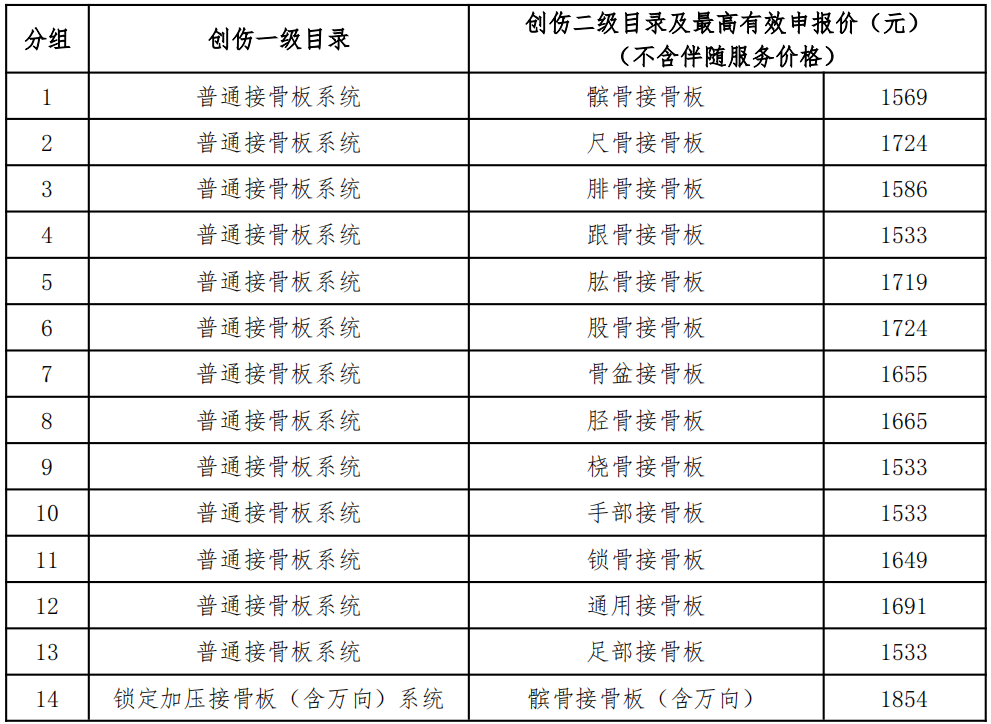 具體分組及最高有效申報(bào)價如下(不含伴隨服務(wù)價格):