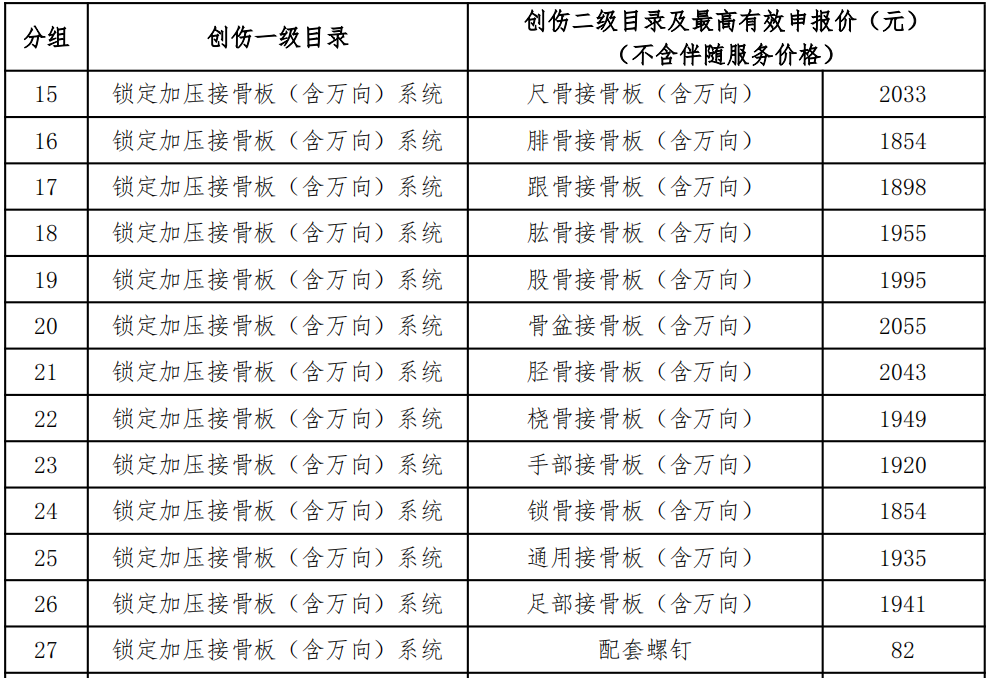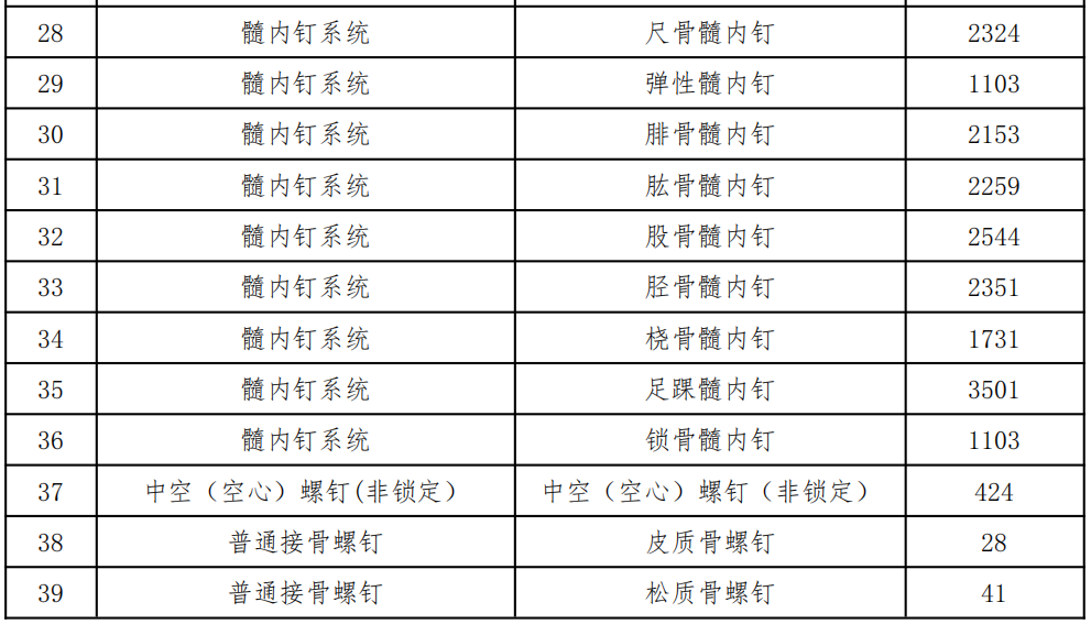接骨板配套螺釘、髓內(nèi)釘配件、皮質(zhì)骨螺釘、松質(zhì)骨螺釘及中空(空心)螺釘(非鎖定)不參與報(bào)量。