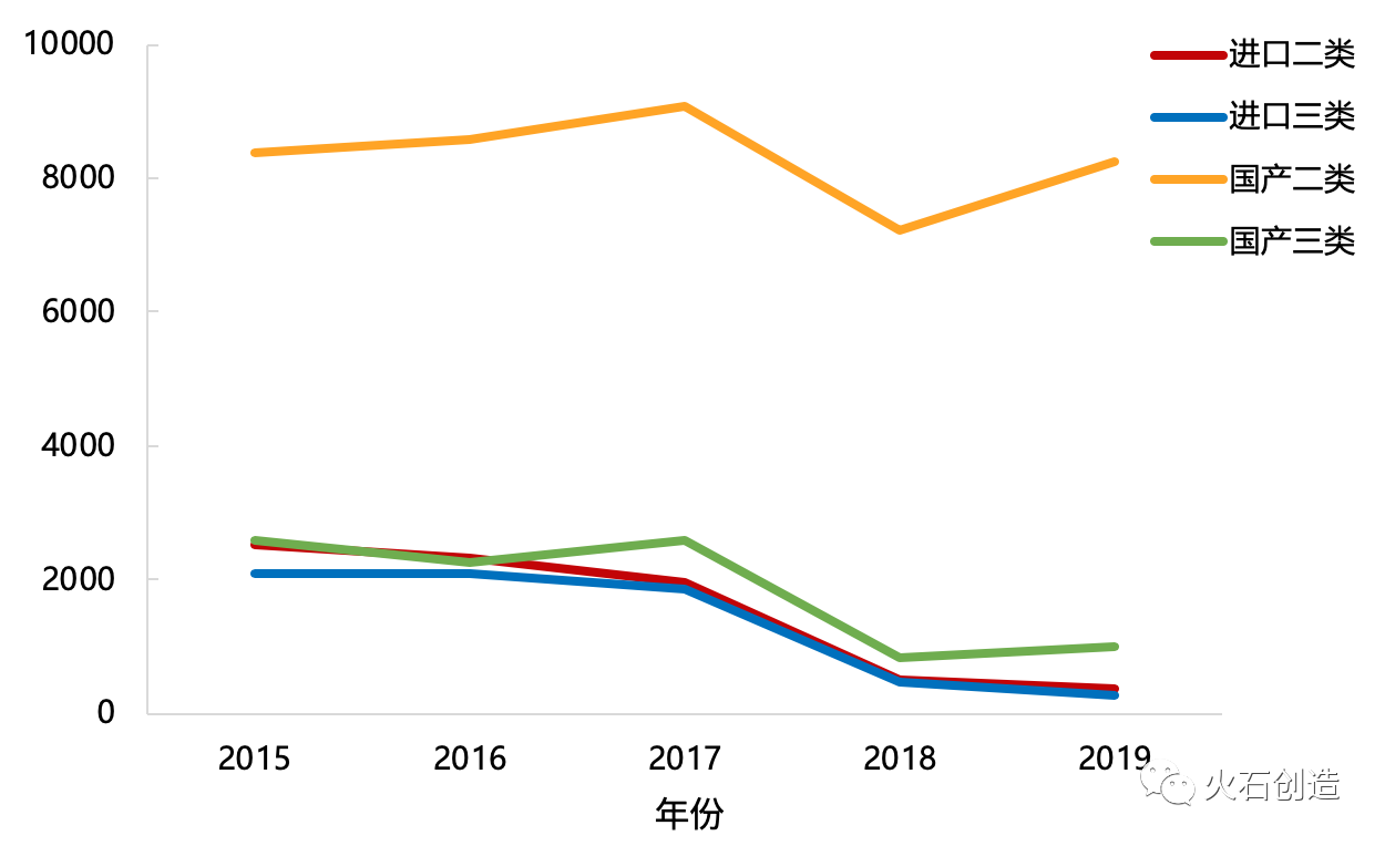 圖1 2015—2019年進口和國產器械國內獲批情況