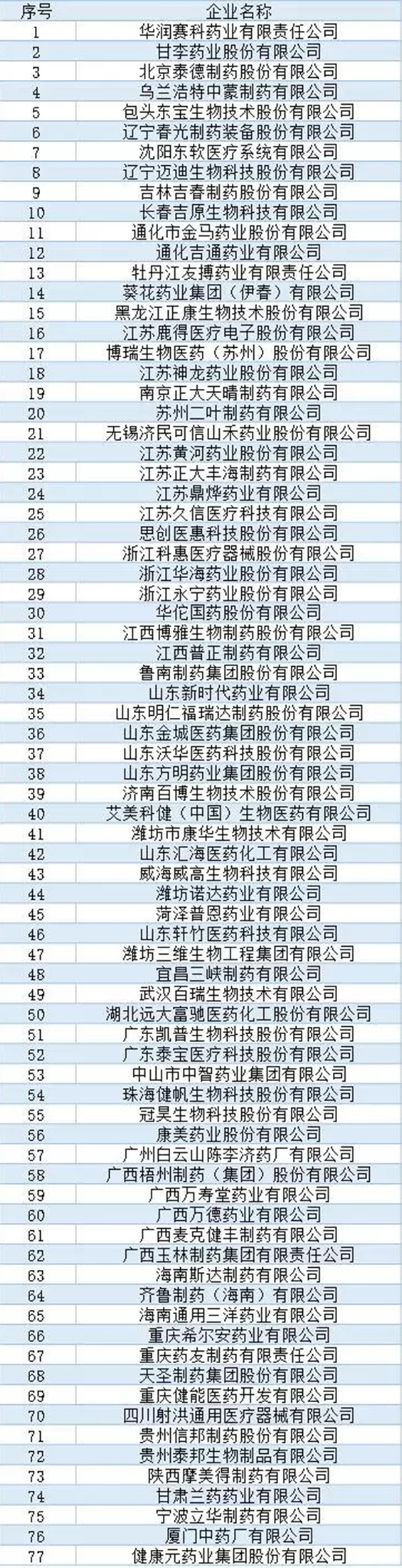 據(jù)不完全統(tǒng)計(jì),共有103家醫(yī)藥企業(yè)上榜,揚(yáng)子江、正大天晴、九芝堂、濟(jì)民可信、康美、齊魯?shù)戎幤螅约吧虾N?chuàng)、華大基因、沈陽(yáng)東軟、威高旗下的IVD企業(yè)——威高生物、浙江科惠、珠海健帆、江西大福、冠昊生物等械圈企業(yè)都榜上有名。