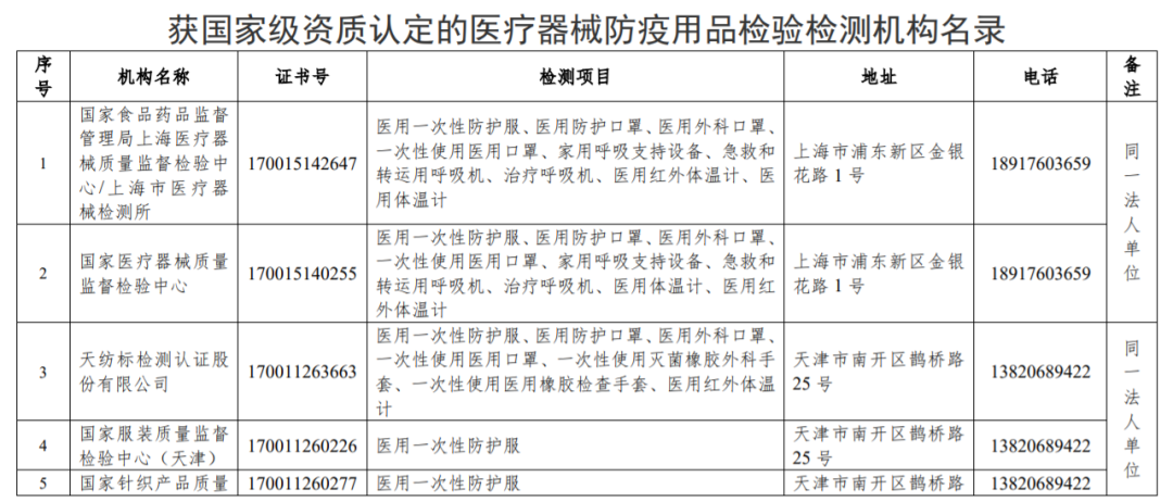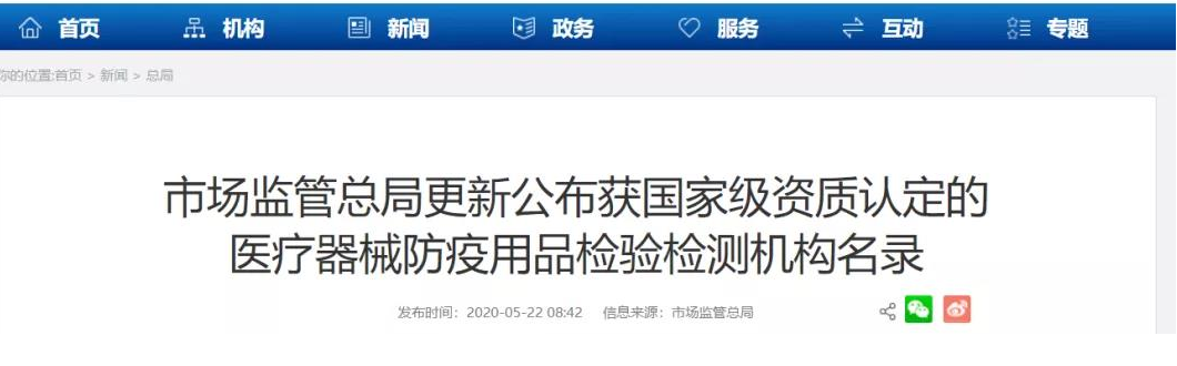 5月22日,國家市場監(jiān)管總局更新公布獲國家級(jí)資質(zhì)認(rèn)定的醫(yī)療器械防疫用品檢驗(yàn)檢測機(jī)構(gòu)名錄。