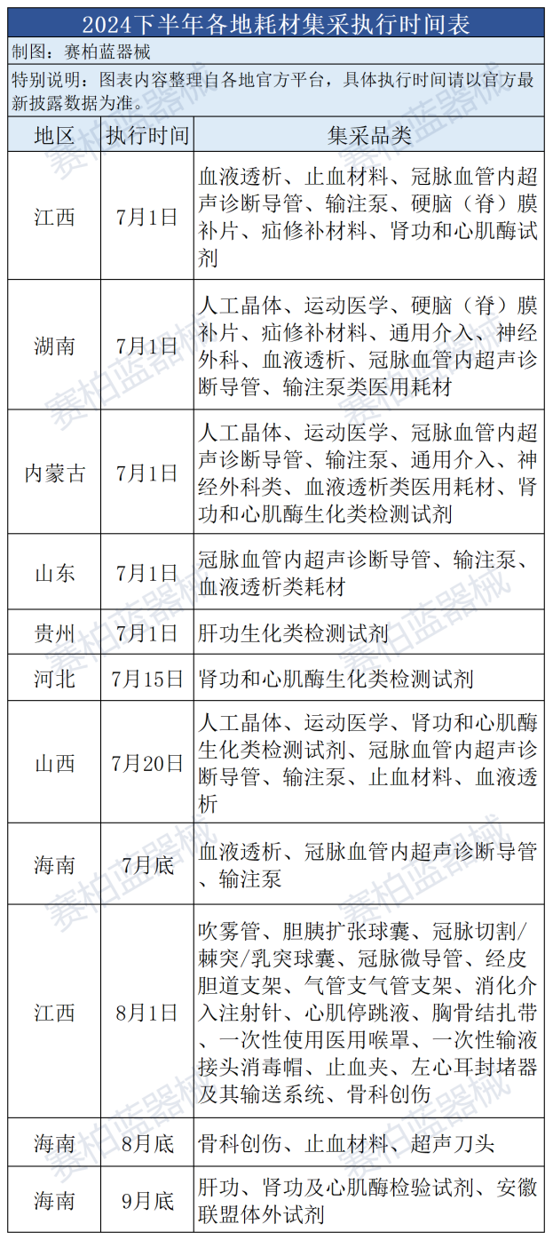 3.江西聯盟肝功、腎功及心肌酶檢驗試劑、安徽聯盟體外試劑(視牽頭省份落地情況而定):計劃于9月底前落地執行。