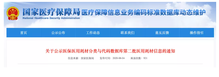(6月4日),國(guó)家醫(yī)保局發(fā)布“關(guān)于公示醫(yī)保醫(yī)用耗材分類與代碼數(shù)據(jù)庫(kù)第二批醫(yī)用耗材信息的通知”,內(nèi)容根據(jù)《國(guó)家醫(yī)療保障局關(guān)于印發(fā)醫(yī)療保障標(biāo)準(zhǔn)化工作指導(dǎo)意見的通知》有關(guān)要求,現(xiàn)將第二批醫(yī)用耗材信息予以公示。
