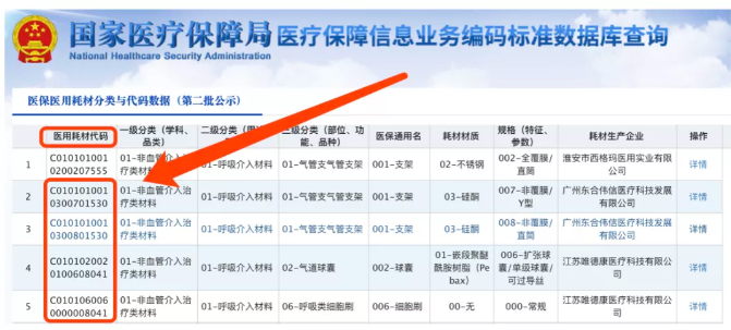 影響全國(guó)耗材的編碼,到底長(zhǎng)什么樣子,今日公布的數(shù)據(jù)庫(kù)中便可以查詢到,點(diǎn)擊詳情后,還能看到更為具體的信息。