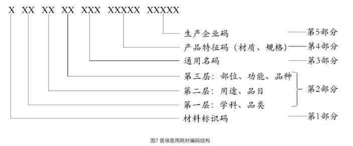 國(guó)家醫(yī)保局在《醫(yī)保疾病診斷和手術(shù)操作、藥品、醫(yī)療服務(wù)項(xiàng)目、醫(yī)用耗材四項(xiàng)信息業(yè)務(wù)編碼規(guī)則和方法》,對(duì)醫(yī)保醫(yī)用耗材編碼做了展示: