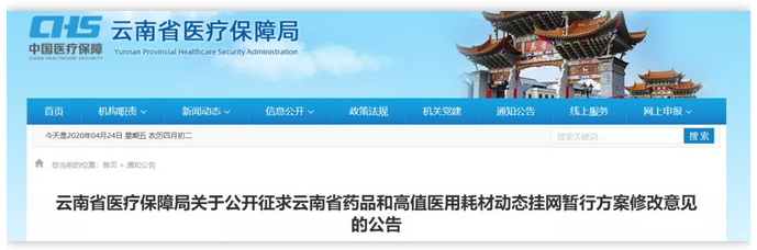 近日,云南省醫(yī)保局發(fā)布《云南省藥品和高值醫(yī)用耗材動態(tài)掛網(wǎng)方案(征求意見稿)》(下稱《意見稿》)。