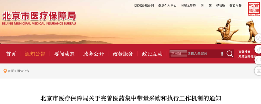 近日,北京醫保局發布《北京市醫療保障局關于完善醫藥集中帶量采購和執行工作機制的通知》(以下簡稱《通知》)(附文末)。