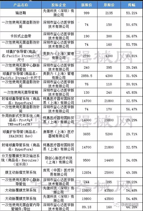 陜西繼5月8日公示了血管介入類動態(tài)調(diào)整結(jié)果,經(jīng)過申投訴后,于6月14日公布最終結(jié)果。經(jīng)測算,陜西血管介入類動態(tài)調(diào)整平均降幅達(dá)到了9.4%,最高降幅為56.47%,來自深圳市益心達(dá)醫(yī)學(xué)新技術(shù)有限公司的一次性使用無菌造影劑針筒由原限價170元降到了74元。