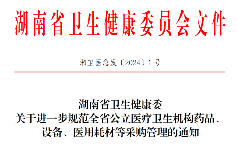 4月8日,湖南省衛(wèi)健委發(fā)布《湖南省衛(wèi)生健康委關(guān)于進(jìn)一步規(guī)范全省公立醫(yī)療衛(wèi)生機(jī)構(gòu)藥品、設(shè)備、醫(yī)用耗材等采購管理的通知》(全文附文末)。