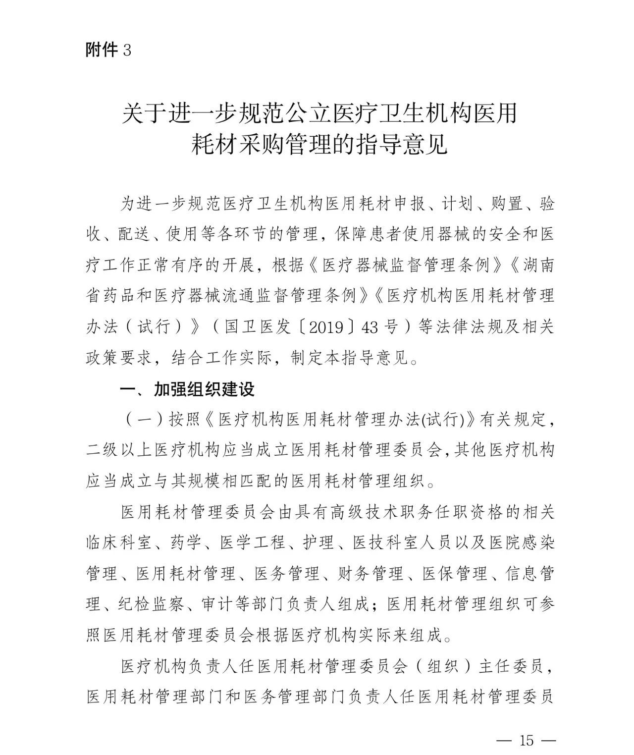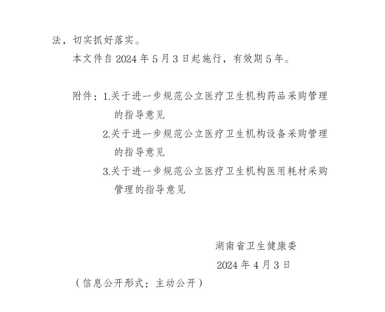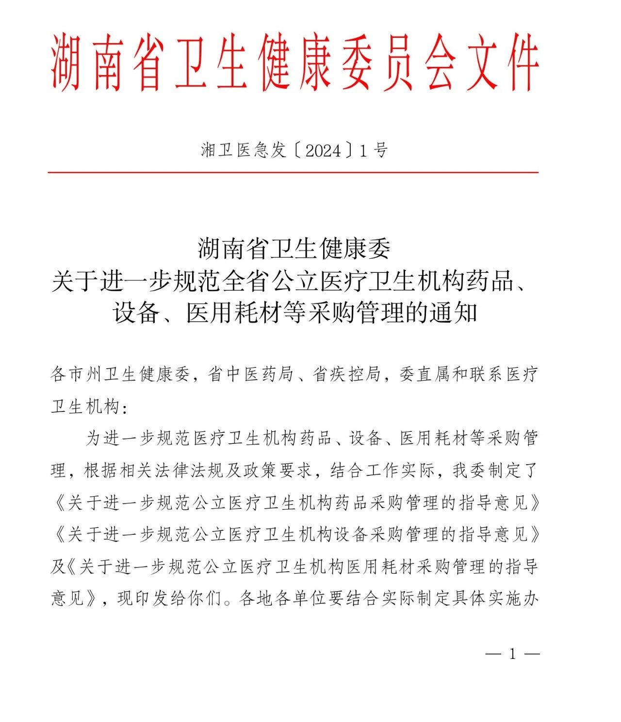 湖南省衛(wèi)健委分別制定了《關(guān)于進(jìn)一步規(guī)范公立醫(yī)療衛(wèi)生機(jī)構(gòu)藥品采購管理的指導(dǎo)意見》《關(guān)于進(jìn)一步規(guī)范公立醫(yī)療衛(wèi)生機(jī)構(gòu)設(shè)備采購管理的指導(dǎo)意見》及《關(guān)于進(jìn)一步規(guī)范公立醫(yī)療衛(wèi)生機(jī)構(gòu)醫(yī)用耗材采購管理的指導(dǎo)意見》。