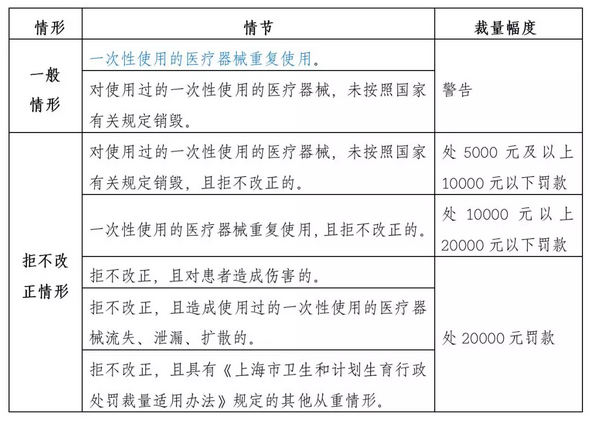 文件中指出,醫(yī)療器械使用單位重復(fù)使用一次性使用的醫(yī)療器械,或者未按照規(guī)定銷毀使用過的一次性使用的醫(yī)療器械的將按以下規(guī)定處罰。