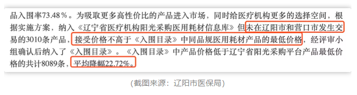 從本次遼陽市的采購規則來看,原則上只有入圍采購目錄,才會取得入院銷售權,除特定情況外(如患者需求等),未入圍即失去兩個城市百家醫療機構的采購權,這對于企業無疑將產生較大影響。