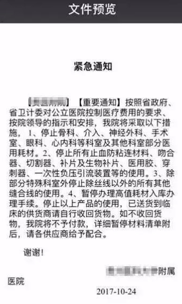 近日,業界頻頻傳出醫院停用耗材的消息,引起了業內人士的熱議。