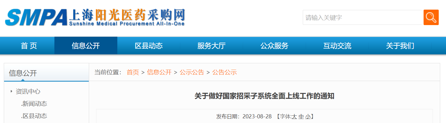 8月28日,上海市陽光醫(yī)藥采購網(wǎng)發(fā)布了《關(guān)于做好國家招采子系統(tǒng)全面上線工作的通知》,國家醫(yī)保信息平臺藥品和醫(yī)用耗材招采管理子系統(tǒng)(簡稱“招采子系統(tǒng)”)將于2023年9月11日全面上線應(yīng)用,原陽光平臺采購功能停止使用。