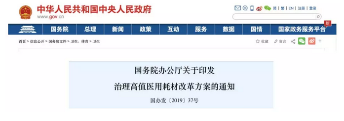 今年國務院印發的關于《治理高值醫用耗材改革方案》中,明確要求取消醫用耗材加成,2019年底前實現全部公立醫療機構醫用耗材“零差率”銷售,高值醫用耗材銷售價格按采購價格執行。