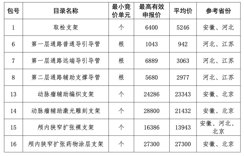 安徽啟動的神經介入集采也于近期公布中選結果,顱內支架、取栓支架和血流導向密網支架三類高價耗材降幅明顯。