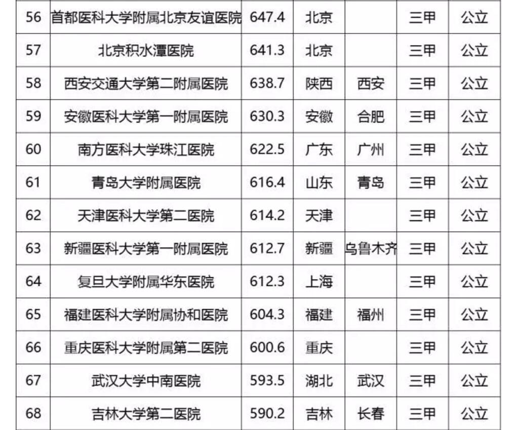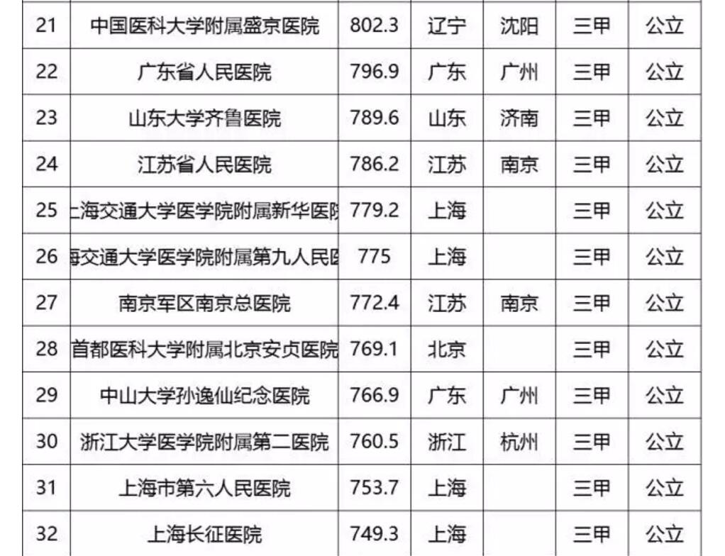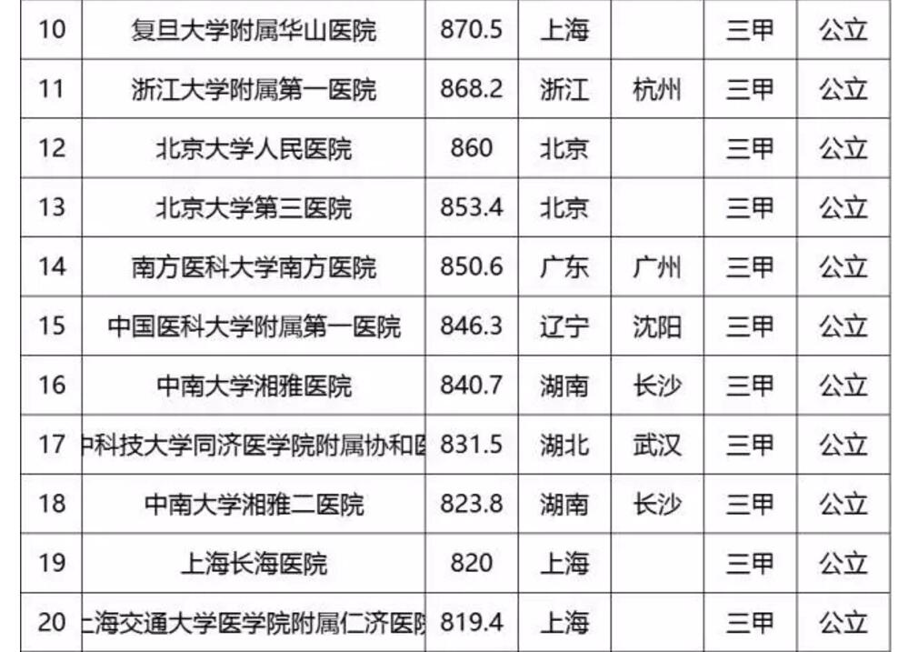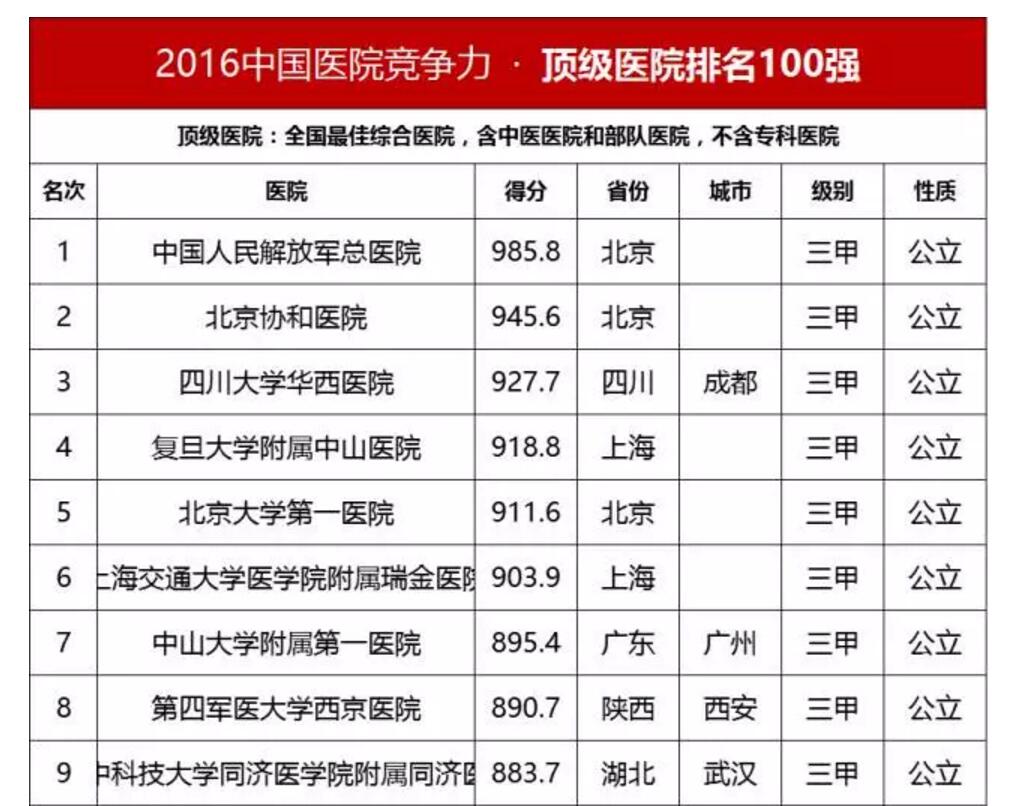 中國頂級醫院百強榜出爐:協和第2 華西第3