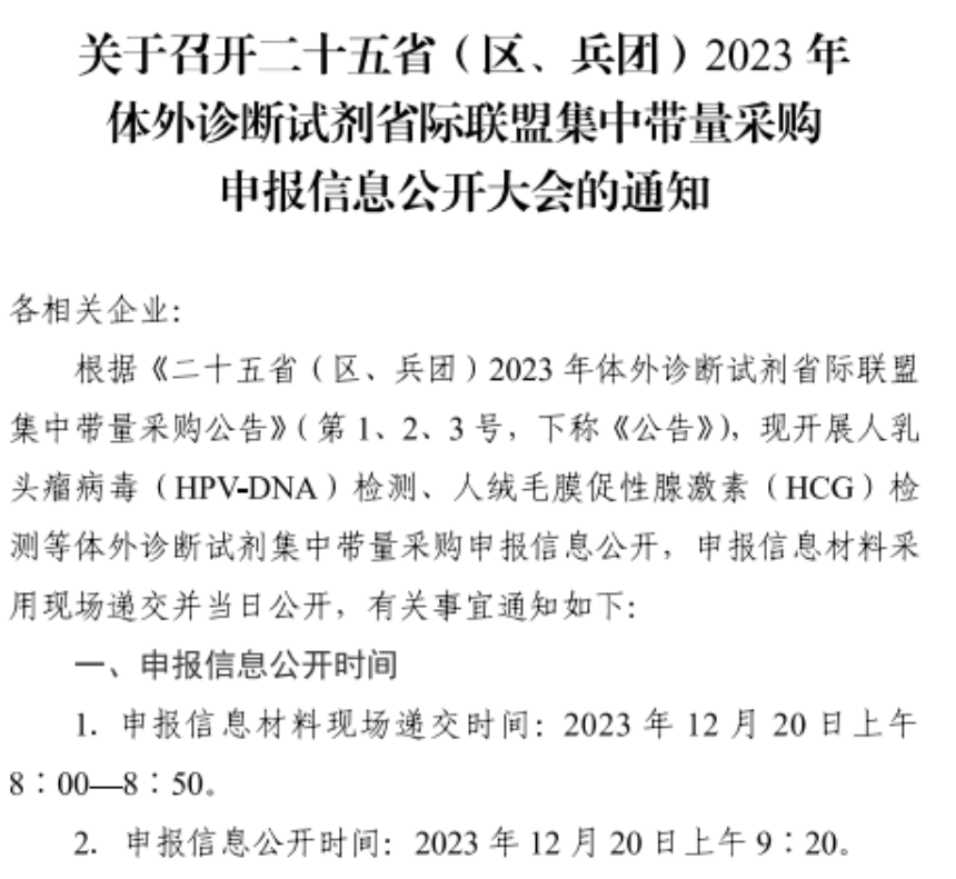 12月13日,安徽省醫藥價格和集中采購中心發布《關于召開二十五省(區、兵團)2023年體外診斷試劑省際聯盟集中帶量采購申報信息公開大會的通知》(以下簡稱《通知》)。