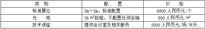 1、標(biāo)準(zhǔn)展位的配置:三面白色展板(高度2.5米)、中文楣板、2盞射燈、1張咨詢桌、2張折椅及1只電源插座(220V5A)。另外標(biāo)準(zhǔn)雙開口加收10%的費(fèi)用。
