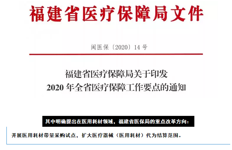 3月10日,福建省醫保局發布《2020年全省醫療保障工作要點的通知》,這份文件劃定福建省醫保局2020年重點工作任務的文件中,加大醫用耗材采購改革力度成為重中之重。