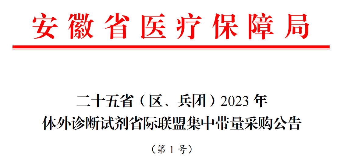 11月17日,安徽省醫(yī)藥集中采購平臺正式發(fā)布《二十五省(區(qū)、兵團(tuán))2023年體外診斷試劑省際聯(lián)盟集中帶量采購公告(第1號)》(完整見文末)。