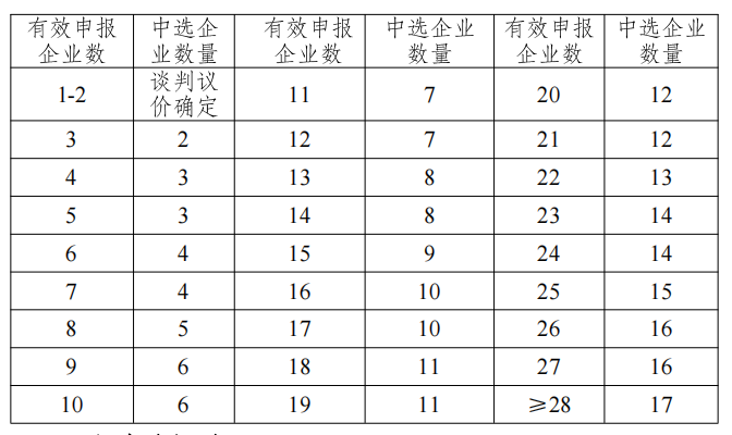 擬中選規(guī)則一:同一競價單元內(nèi)(性激素六項、傳染病八項(酶聯(lián)免疫法)、傳染病八項產(chǎn)品(化學(xué)發(fā)光法)、糖代謝兩項分別作為一個競價單元),根據(jù)有效申報企業(yè)數(shù)目及排名順序確定擬中選企業(yè),擬中選排名與企業(yè)排名規(guī)則相同。