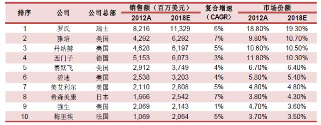 以下是IVD行業(yè)中體外診斷企業(yè)中前10排行