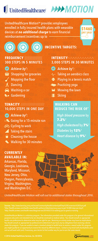 “UnitedHealthcare Motion將可穿戴科技、遠(yuǎn)程醫(yī)療和健康激勵(lì)結(jié)合起來(lái)使員工掌握自己的健康,同時(shí)使雇主更有效地管理醫(yī)療花費(fèi),”UnitedHealthcare首席醫(yī)療官Sam Ho說(shuō)。“員工可以通過(guò)每天走路來(lái)改善健康還能得到物質(zhì)獎(jiǎng)勵(lì),這種技術(shù)不僅簡(jiǎn)單、安全,還很直觀。”他們希望通過(guò)這種方式促進(jìn)員工養(yǎng)成更健康的生活方式。