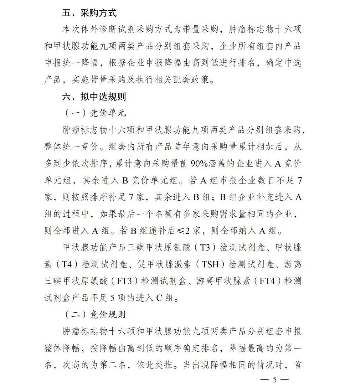 具體規則上,本次集采對兩類產品開展品分別組套采購,組套內所有產品首年意向采購量累計相加后排序,累計意向采購量前 90%涵蓋的企業進入A競價單元組,其余進入B競價單元組,其他情況如下: