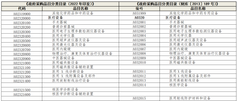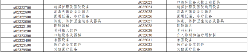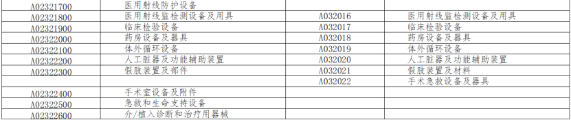 其中在醫(yī)療設備一欄中,新版目錄共收錄了36類醫(yī)療設備,較老版目錄新增了“醫(yī)用磁共振設備輔助裝置”、“核醫(yī)學診斷設備輔助裝置”,并且“手術急救設備及器具”也分成“手術室設備及附件”“手術室設備及附件”。