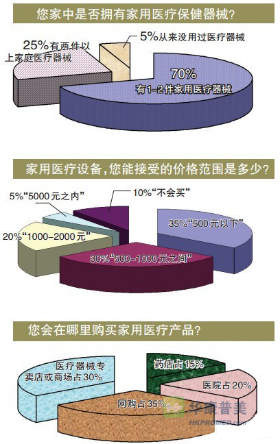 “如果需要,您會在哪里購買家用醫療產品?”回答顯示,藥店占15%;醫院占20%;醫療器械專賣店或商場占30%;網購占35%。