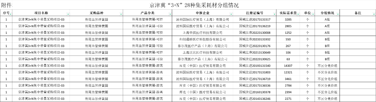 1月23日,河北省醫用藥品器械集中采購中心發布《關于公布京津冀“3+N”聯盟28種醫用耗材集中帶量采購產品報名結果、約定采購量、分組情況及關聯關系的通知》、《關于開展京津冀“3+N”聯盟28種集中帶量采購醫用耗材報價工作的通知》。