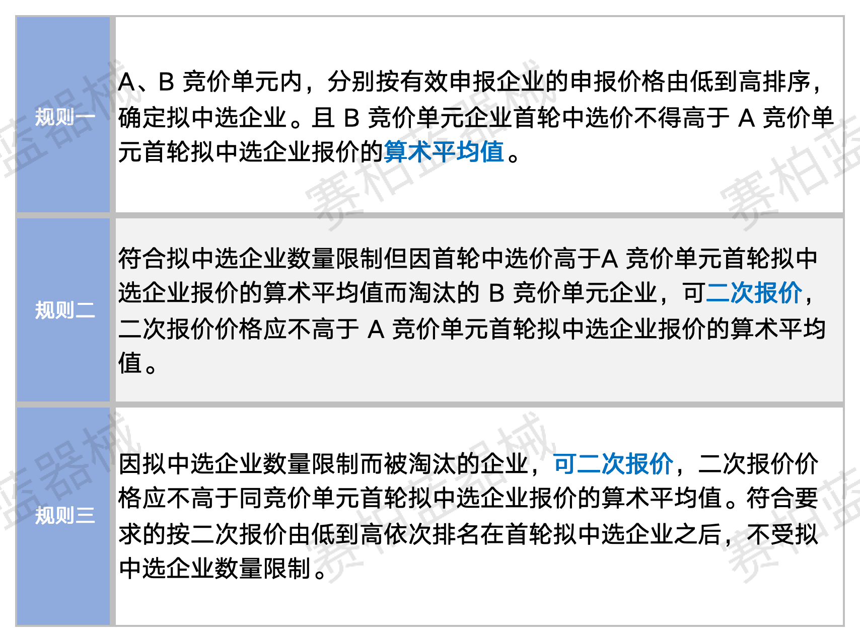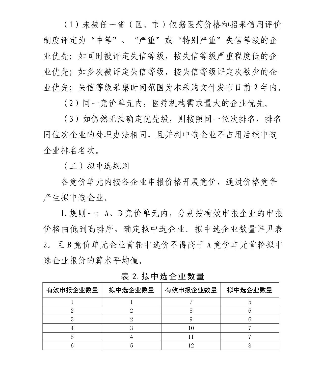 剩余量分配:(1)由醫療機構在所有首輪報價擬中選的企業中自主選擇分配;(2)各競價單元通過“擬中選規則二和三”中選的企業均不參與剩余量的分配。